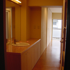 住み手は女性1人です。もともと壁際にあった水回りを壁から離し、部屋全体を回遊できるよう設計しました。